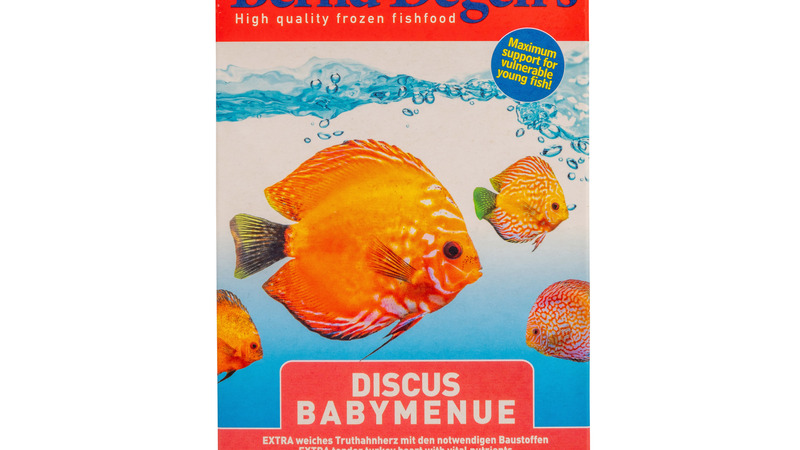 De bekende kweker van discussen, Bernd Degen, heeft door jaren ervaring diverse voeders ontwikkeld. Degen baby menu is voornamelijk gemaakt van zacht kalkoenhart waarin de meest noodzakelijke voedingstoffen zitten. Het kalkoenhart is extra fijn gemalen zodat ook kleine discussen dit goed tot zich kunnen nemen.